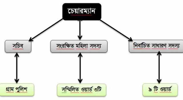 ইউনিয়নের জনগনের প্রত্যক্ষ ভোটে নির্বাচিত ০১ জন চেয়ারম্যান, ০৯টি ওয়ার্ডে ০৯জন ইউপি সদস্য ও ০৩জন সংরক্ষিত মহিলা সদস্য এবং সরকারি নীতিমালা অনুযায়ী নিয়োগপ্রাপ্ত ০১ জন ইউপি সচিব, ৯টি ওয়ার্ডে ০৯জন গ্রাম পুলিশ ও ০১জন দফাদারকে নিয়ে ইউনিয়ন পরিষদের সাংগঠনিক কাঠামো তৈরী হয়।